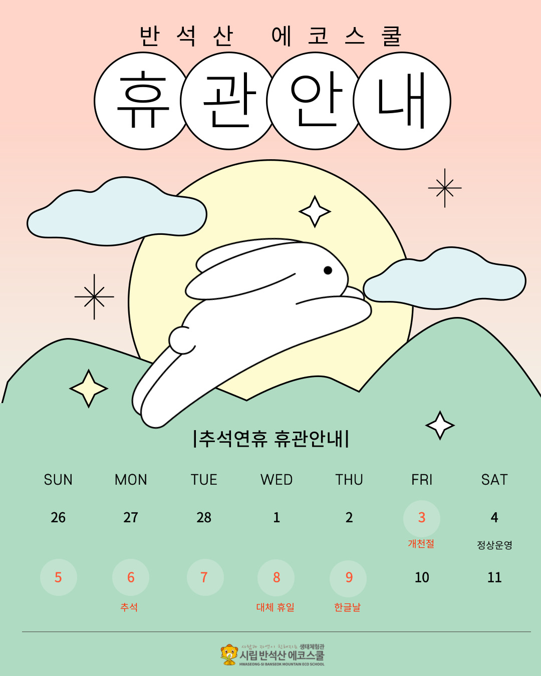 [반석산 에코스쿨] 추석연휴 휴관 안내