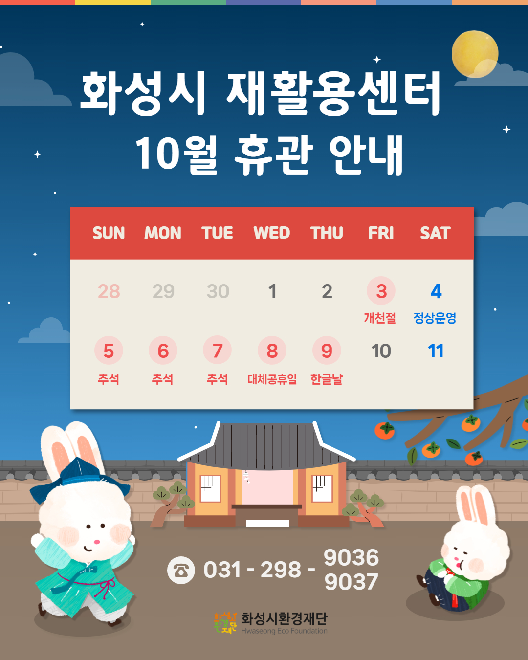 [화성시 재활용센터] 2025년 10월 휴관 안내