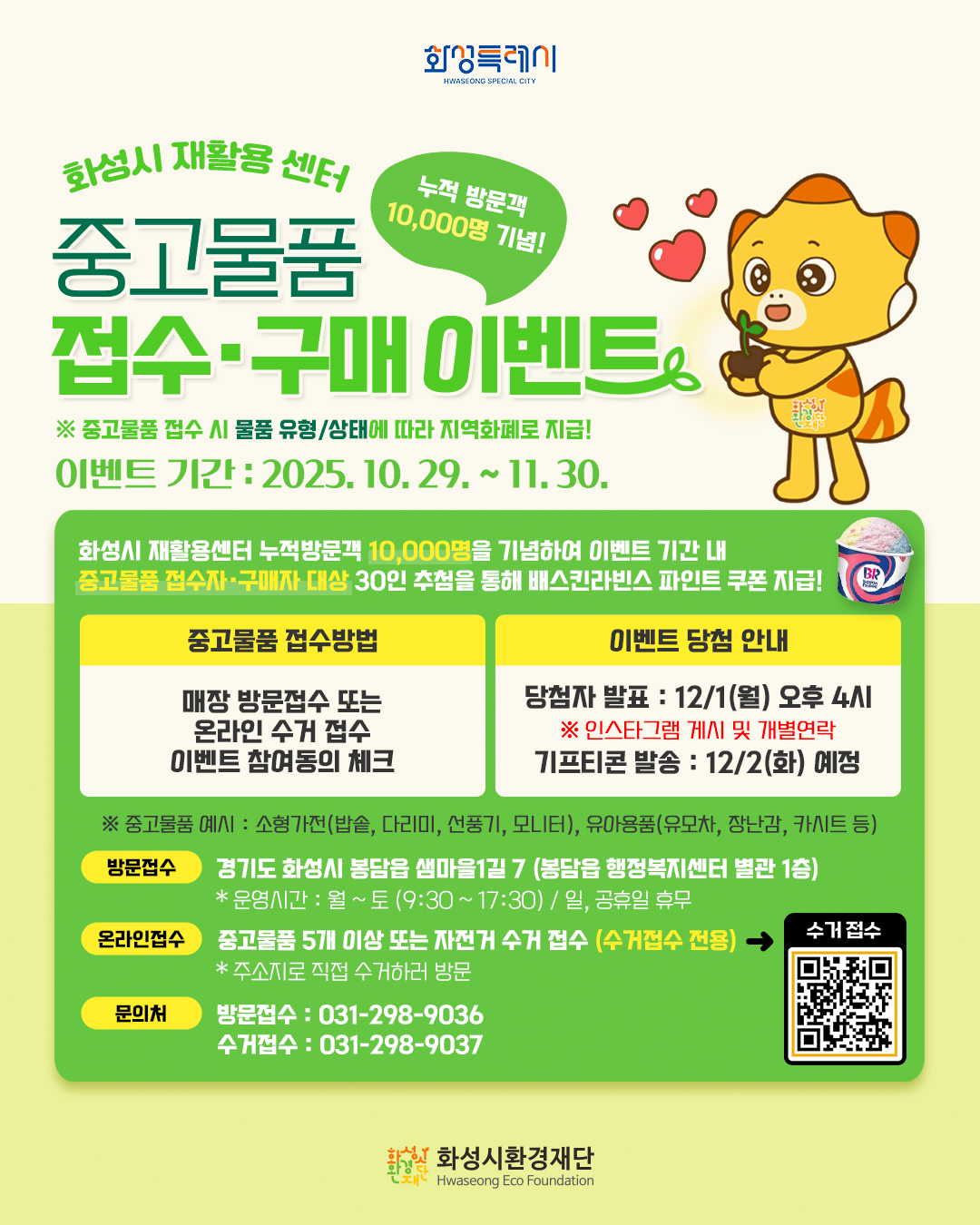 [화성시 재활용센터] 중고물품 접수 및 구매 이벤트 진행 (10/29 ~11/30 베스킨라빈스 쿠폰 지급)