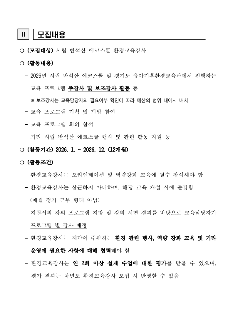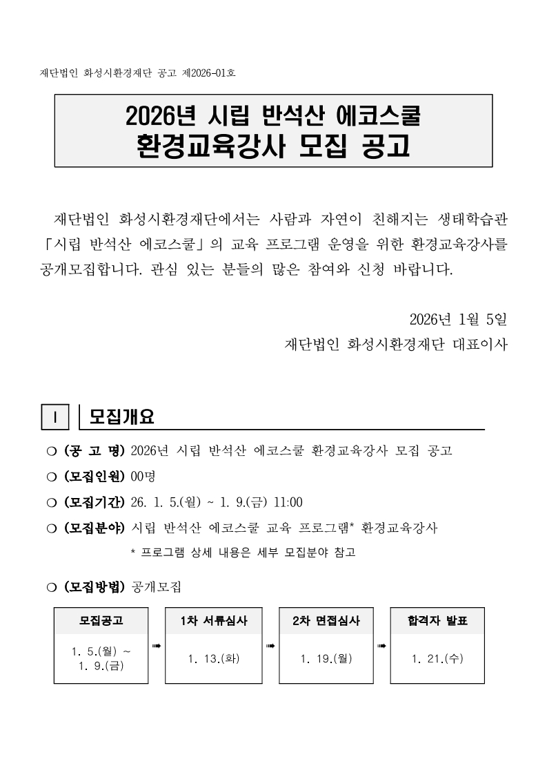 2026년 시립 반석산 에코스쿨 환경교육강사 공개모집 공고