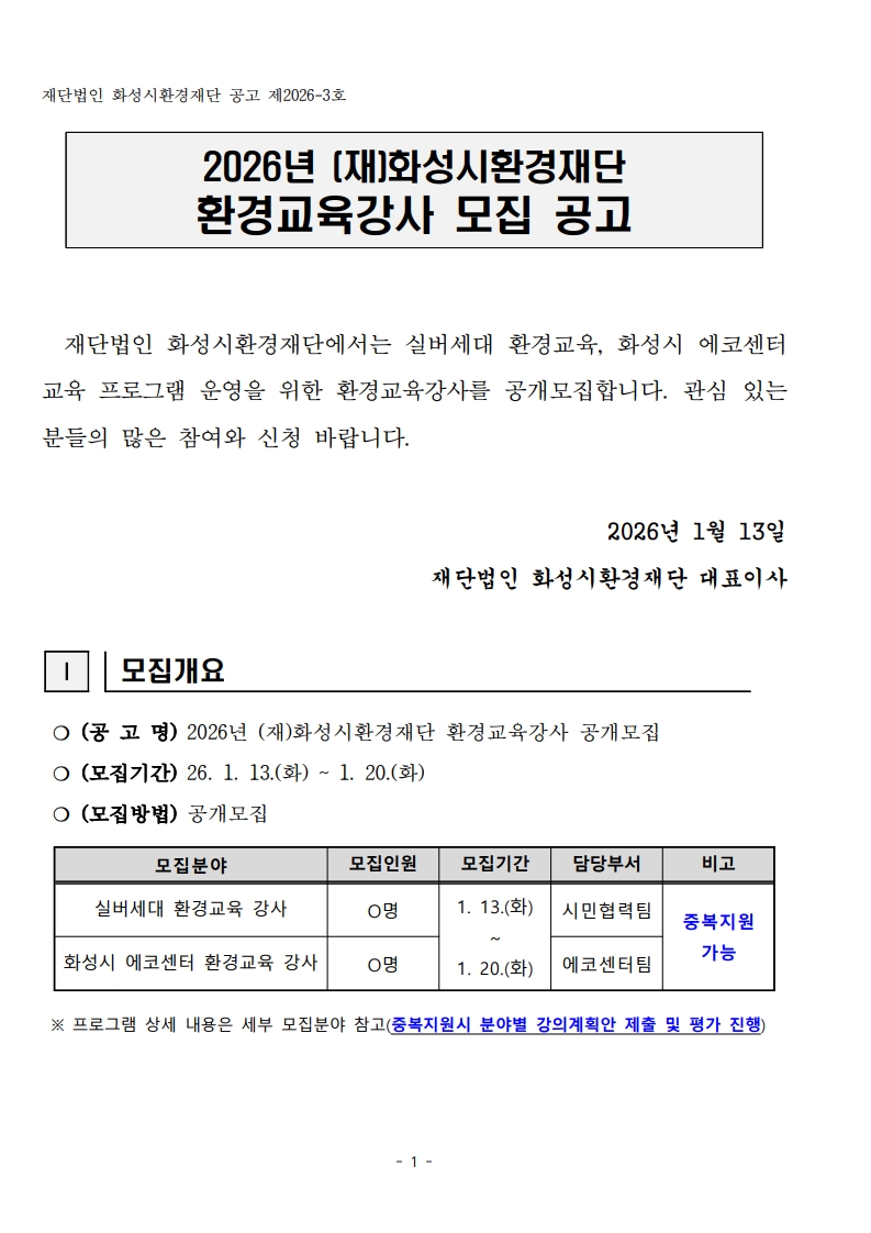 붙임. 2026년 (재)화성시환경재단 환경교육강사 지원서류.hwp [139.5 KB]