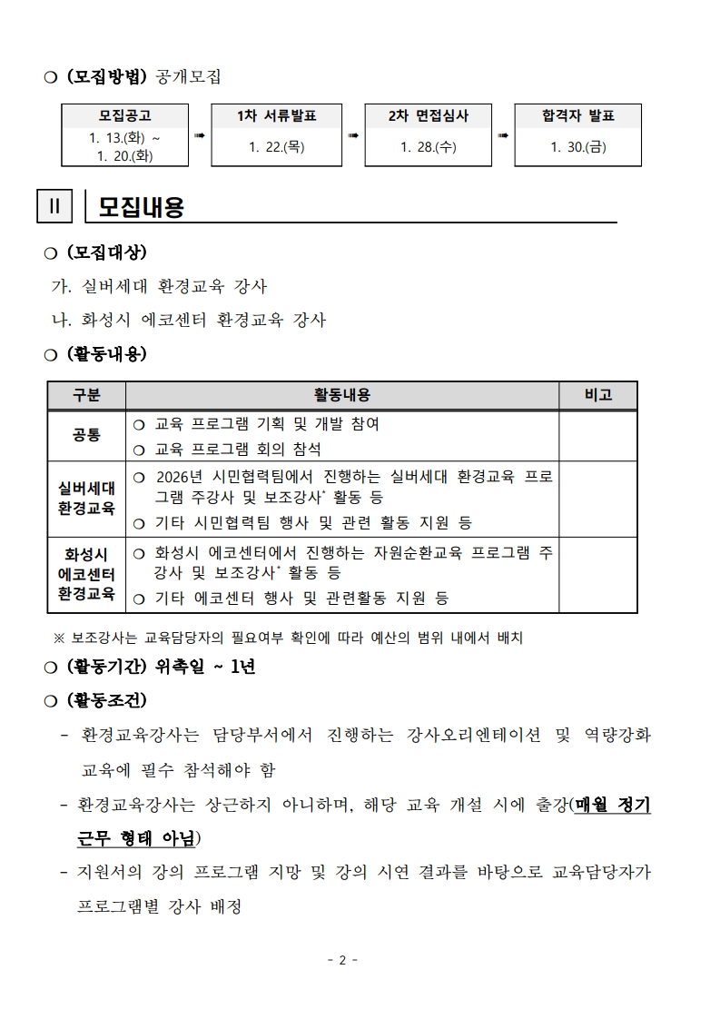 2026년 (재)화성시환경재단 환경교육강사 모집 공고
