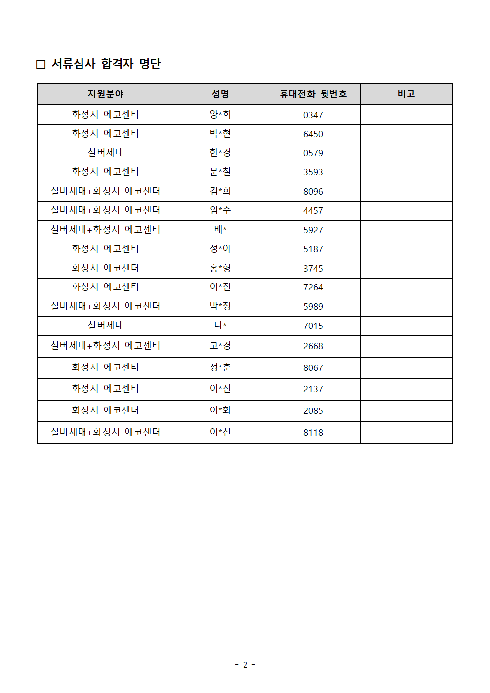 2026년 (재)화성시환경재단 서류심사 결과 및 면접대상자 알림(정정공고)