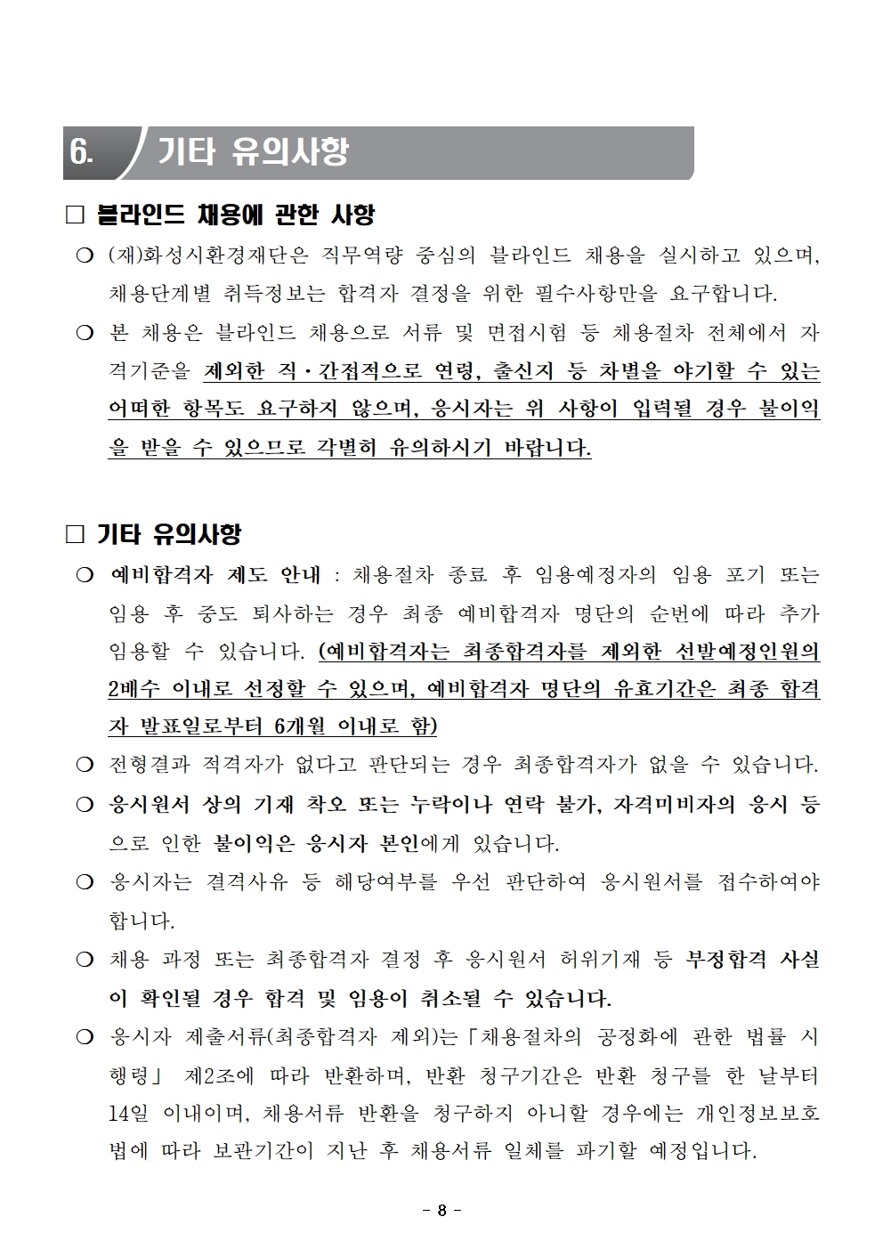 2025년 (재)화성시환경재단 제6회 직원 공개채용 전형결과