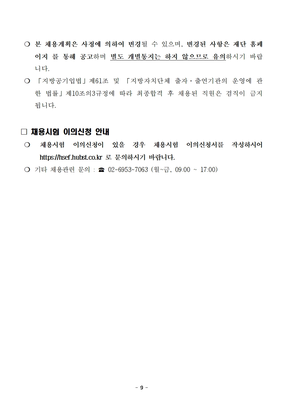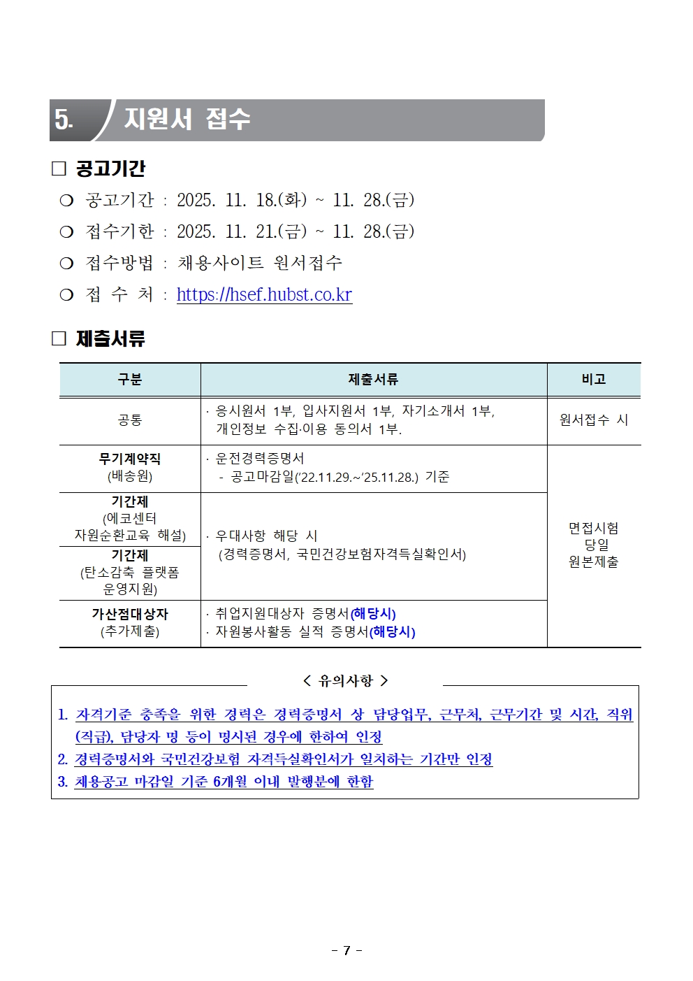 2025년 재단법인 화성시환경재단 제7회 직원 공개채용 서류전형 결과 알림